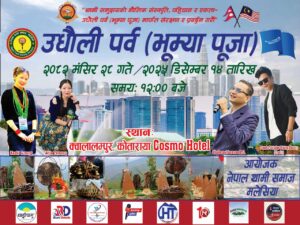 क्वालालम्पुर, मलेसिया । नेपाल थामी समाज मलेसियाले यस वर्ष उधौली पर्व (भुम्या पूजा)–२०८२ मलेसियामै पहिलोपटक भव्य रूपमा मनाउने भएको छ। कार्यक्रमका लागि आवश्यक सबै तयारी पूरा भएको अध्यक्ष सन्तोष ठान्टी थाङ्मीले जानकारी दिनुभयो। अध्यक्षका अनुसार मुख्य कार्यक्रम २०८२ मंसिर २८ गते (२०२५ डिसेम्बर १४) क्वालालम्पुर–कोतारायास्थित Cosmo Hotel मा आयोजना...[...]