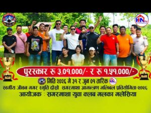 मलेसियाको मलक्का राज्यमा रहेको सगरमाथा युवा क्लबले स्वर्गीय जीवन मगरको सम्झनामा उक्त प्रतियोगिता आयोजना गर्न लागेको हो। क्लबका अध्यक्ष प्रदीप बोहोराले हिरोनेपाल टिभीसँग कुरा गर्दै प्रतियोगिता आगामी मे ३१ र जुन १, २०२६ मा सञ्चालन हुने जानकारी दिनुभयो। प्रतियोगितामा मलक्का भित्रका ६ टिम र बाहिरका ६ टिम गरी...[...]