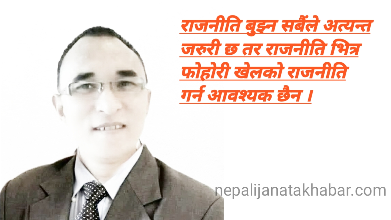राजनीति बुझ्न सबैंले अत्यन्त जरुरी छ तर राजनीति भित्र फोहोरी खेलको राजनीति गर्न आवश्यक छैन ।हरेक क्षेत्रमा राजनीति हाबी हुनु , र राजनीतिक बैइमानी जस्ता गलत प्रवृत्तिले देश बिकाशको गतिमा अगाडी बढ्नु त कुरै छोडौ सुरुवात नै हुन सकेको छैन ।