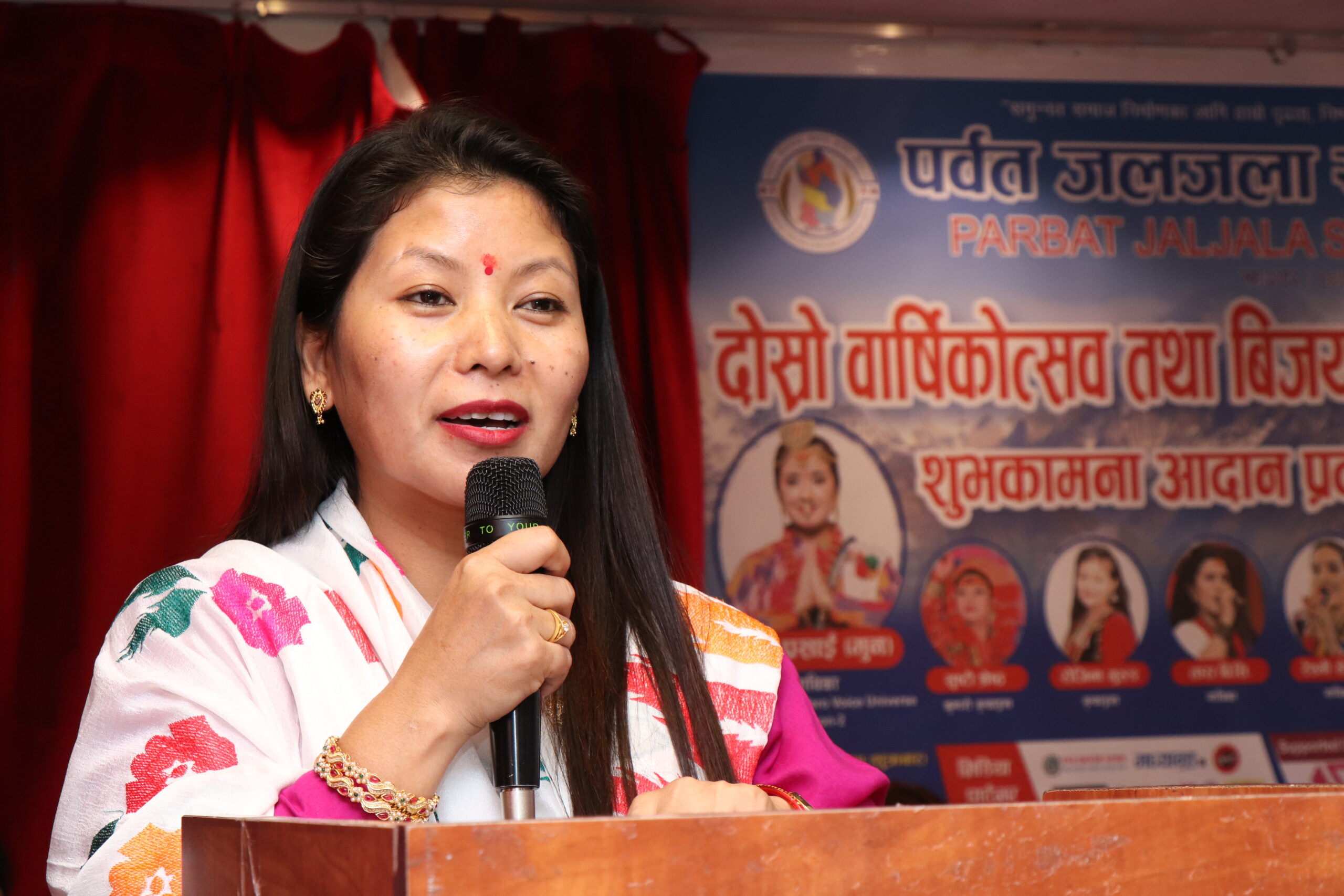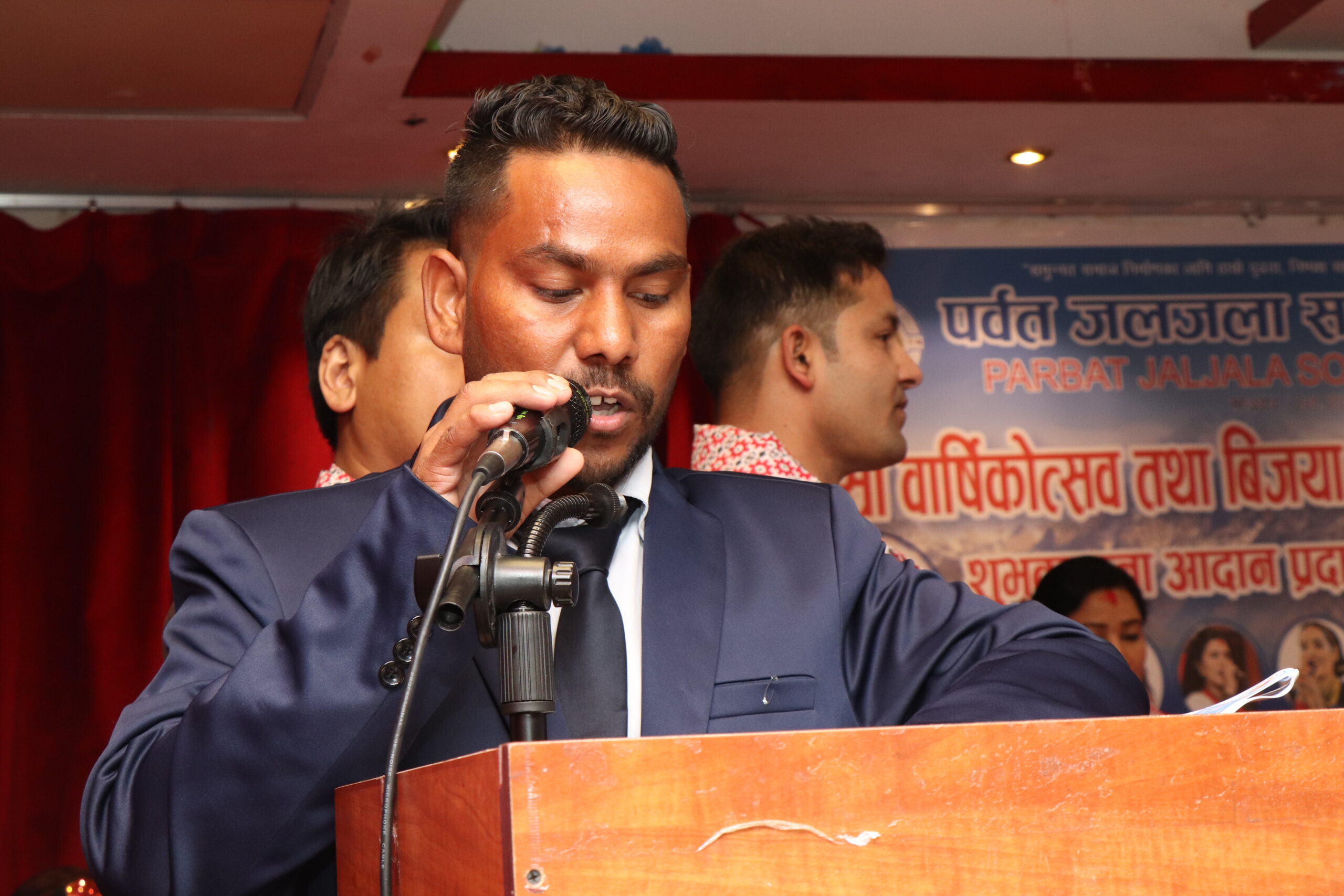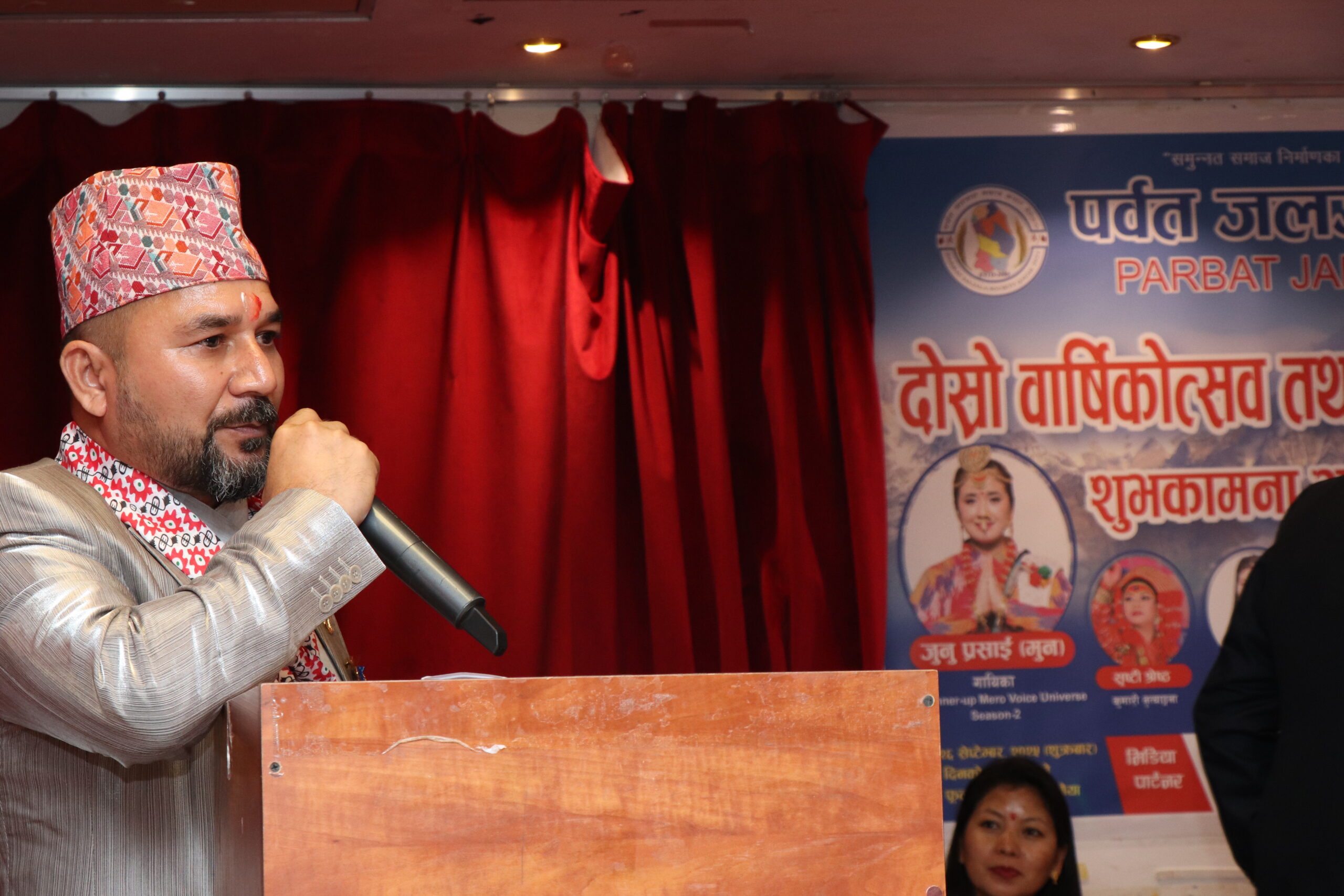 कार्यक्रममा प्रमुख अतिथि, अतिथि कलाकारद्वय प्रसाईं र पौडेल लाई दोसल्ला ओढाएर मायाको चिनो र सम्मान पत्रद्वारा एवं कार्यक्रममा प्रस्तुति दिने सबै कलाकार सङ्गै पत्रकारलाई पारिश्रमिक सहित सम्मान पत्रद्वारा सम्मान गरिएको थियो भने कार्यक्रमलाई सम्बोधन गर्दै प्रमुख अतिथि आचार्यले समाजले गरेको सामाजिक कार्यहरुको खुलेर प्रशंसा गरे । उनले आफू वैदेशिक रोजगारीमै रहेर दशै मनाउन घर जान लागेको बेला संजोकले आफू जन्मिएको माटो पर्वत जलजला समाजको दोस्रो वार्षिकोत्सव मनाउने अवसर मिलेको र प्रमुख अतिथिको रुपमै सहभागी हुन पाउँदा आफूलाई भाग्यमानी ठानेको बताए । आचार्यले थप बोल्दै पर्वत समाज कतार र पर्वत जलजला समाज कतार विचको समस्या आफुलाई थाहा नभएको र त्यस्तै कुनै समस्याको कारण समाज अलग भएको हो भने त्यसको समाधान र एकताको लागि आफुले पहल गर्ने पनि बताए भने नितान्त सामाजिक सेवाको भावनाले स्थापना भएका पर्वत जलजला समाज जस्ता संघ संस्था भित्र राजनीतिक नगर्न र गर्न नहुने बताए ।