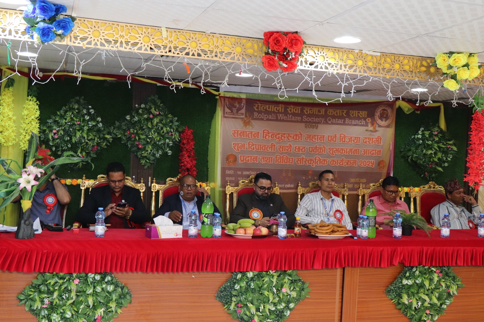समाजले समाजका अध्यक्ष गोपाल डागींको सभापतित्व र गैरआवासीय नेपाली संघ, राष्ट्रिय समन्वय परिषद कतारका अध्यक्ष कृष्ण पन्थीको प्रमुख आतिथ्यतामा सनातन हिन्दुहरुको महान पर्व बिजया दशमी शुभ दिपावली तथा छट विशेष शुभकामना आदानप्रदान कार्यक्रम सम्पन्न गरेको हो ।
