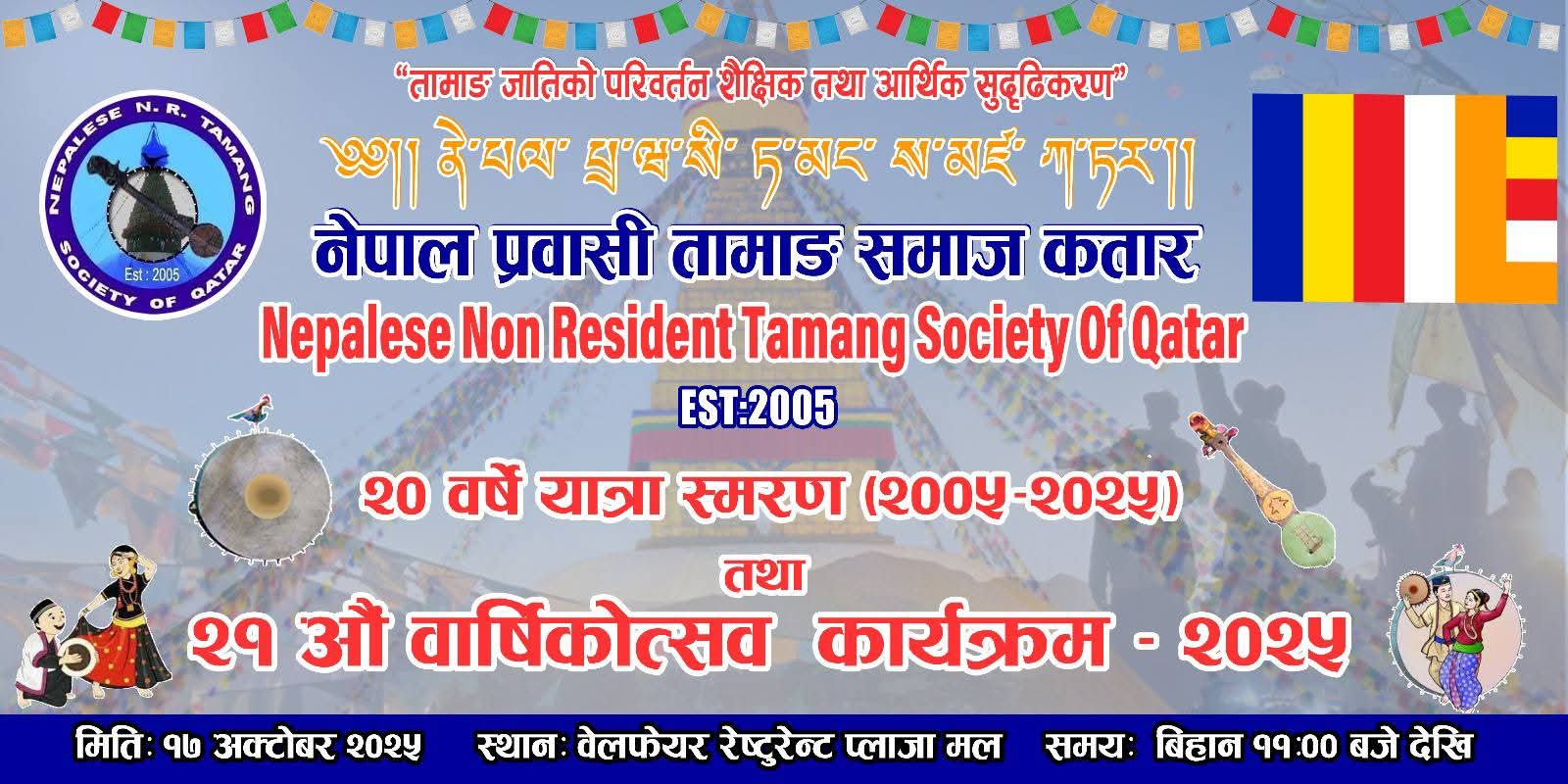 दोहा,कतार- नेपाल प्रवासी तामाङ समाज कतारले २१औं वार्षिकोत्सव मनाउने भएको छ ।