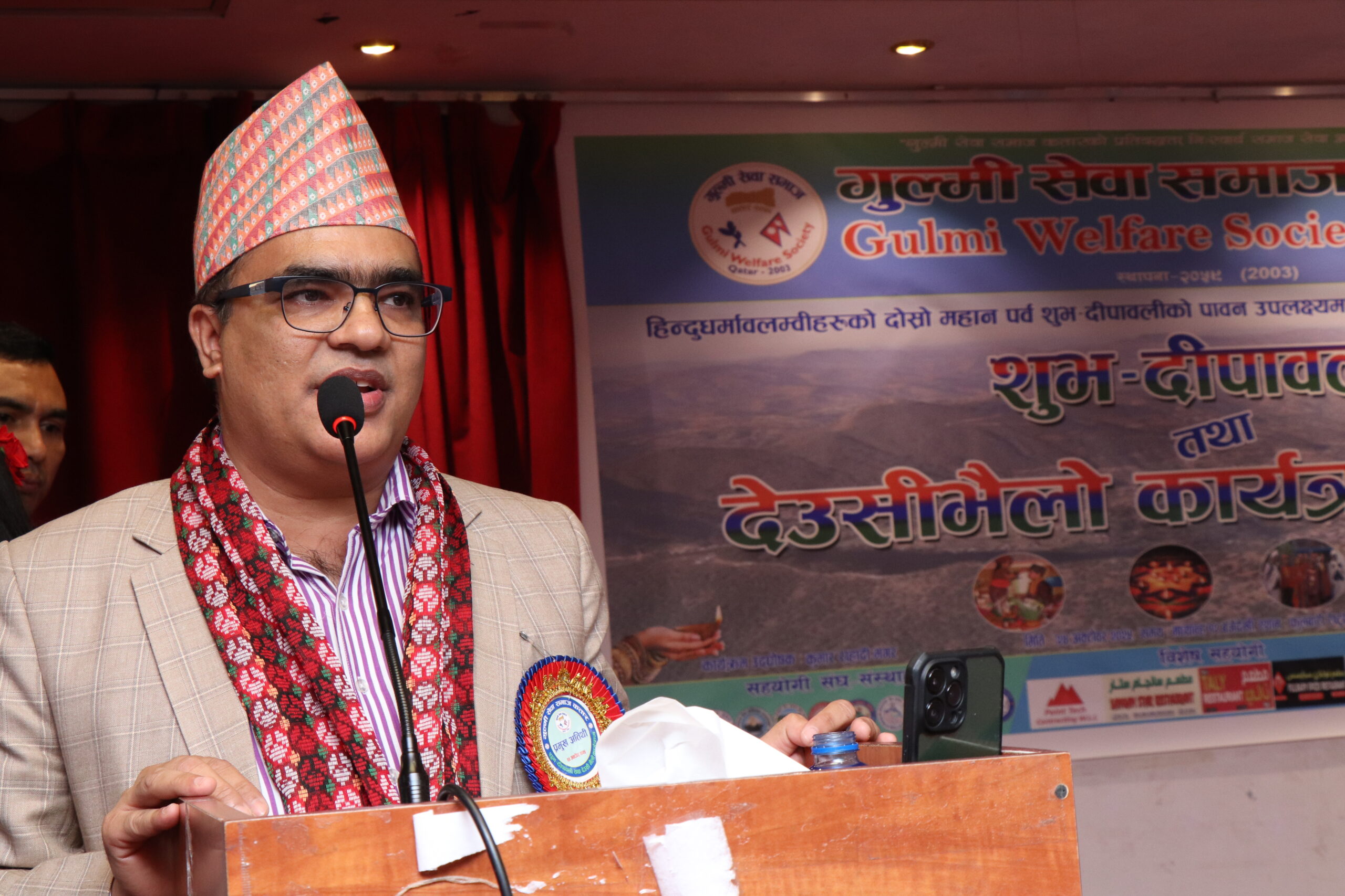 कार्यक्रममा मन्तव्य राख्ने क्रममै प्रमुख अतिथि पोख्रेलले आफु गुल्मीका धेरै व्यक्तिहरु सङ्ग परिचित भए पनि गुल्मीले आयोजना गरेका चाडपर्व विशेष कार्यक्रममा उपस्थित भएर प्रत्यक्ष अवलोकन गर्ने अवसर पाउँदा गाउँमै भएको भान भएको बताए । पोख्रेलले यसरी परदेश रहेर पनि समाजले नेपाली चाडपर्व, कला संस्कृति र मौलिकताको जगेर्नाको निमित्त खेलेको अहम भुमिका प्रती अत्यन्तै खुसी लागेको बताए ।