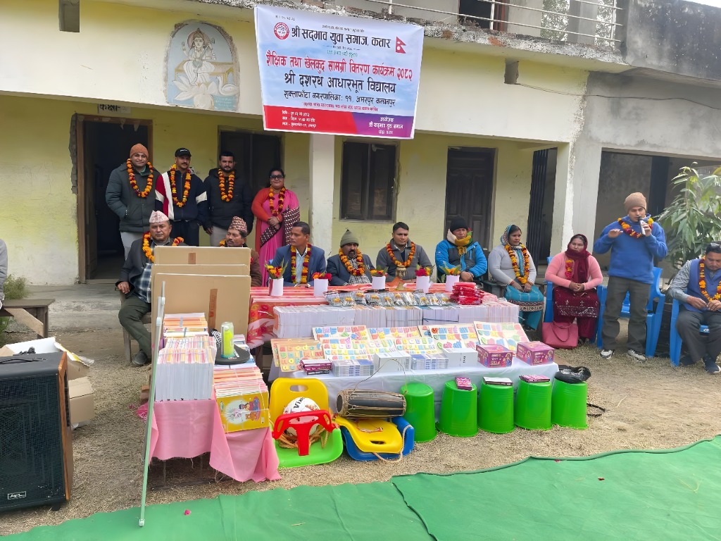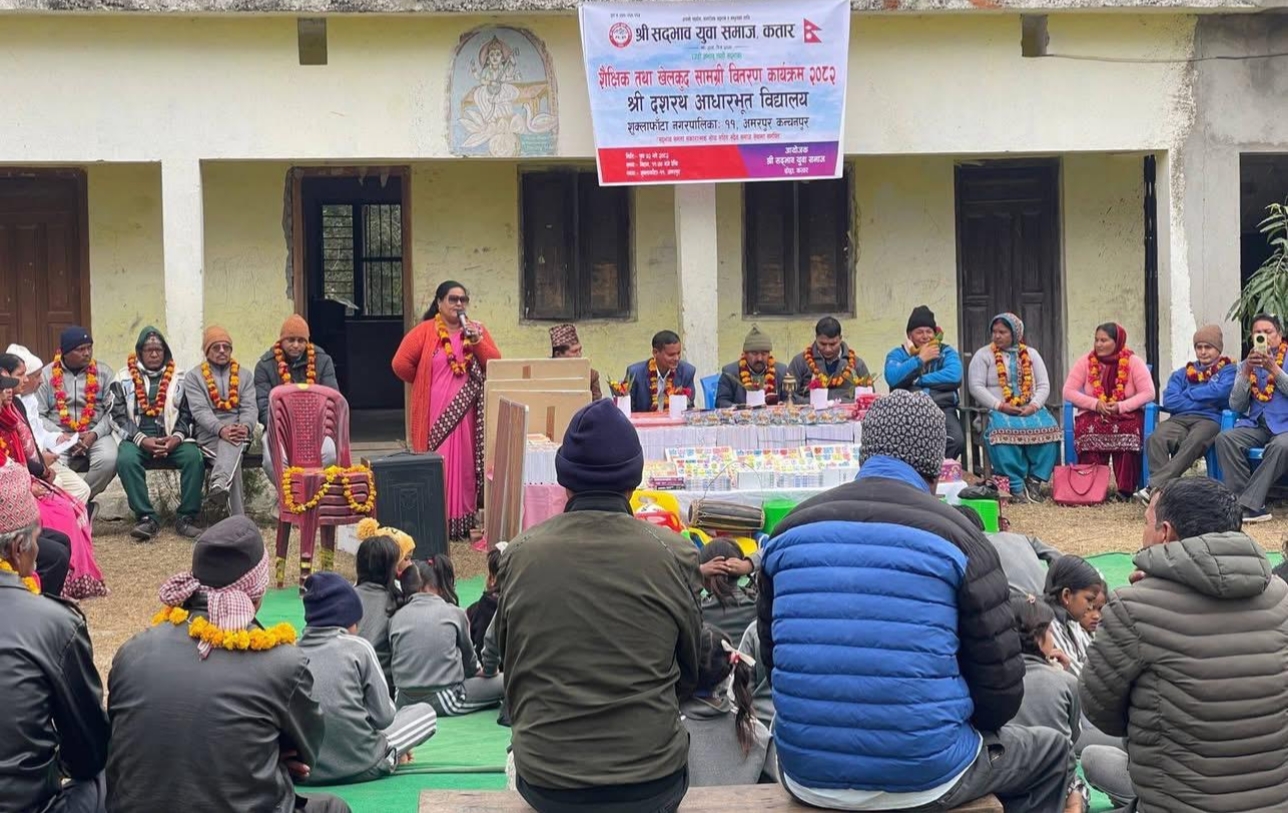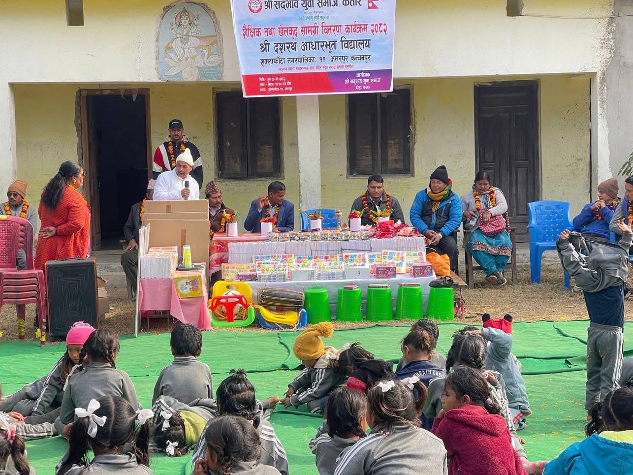 दोहा,कतार- सद्भाव युवा समाज कतारले कञ्चनपुर जिल्लाको शुक्लाफाँटा नगरपालिका- ११ अमरपुरमा रहेको श्री दशरथ आधारभूत विद्यालय लाई शैक्षिक,खेलकुद र स्टेशनरी सहित कार्यालय व्यवस्थापन तथा सरसफाइको लागि आवश्यक सामग्री सहयोग गरेको छ ।